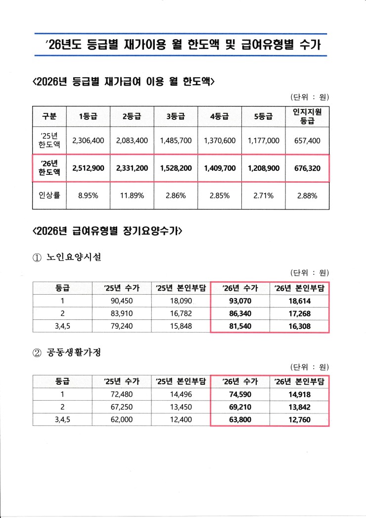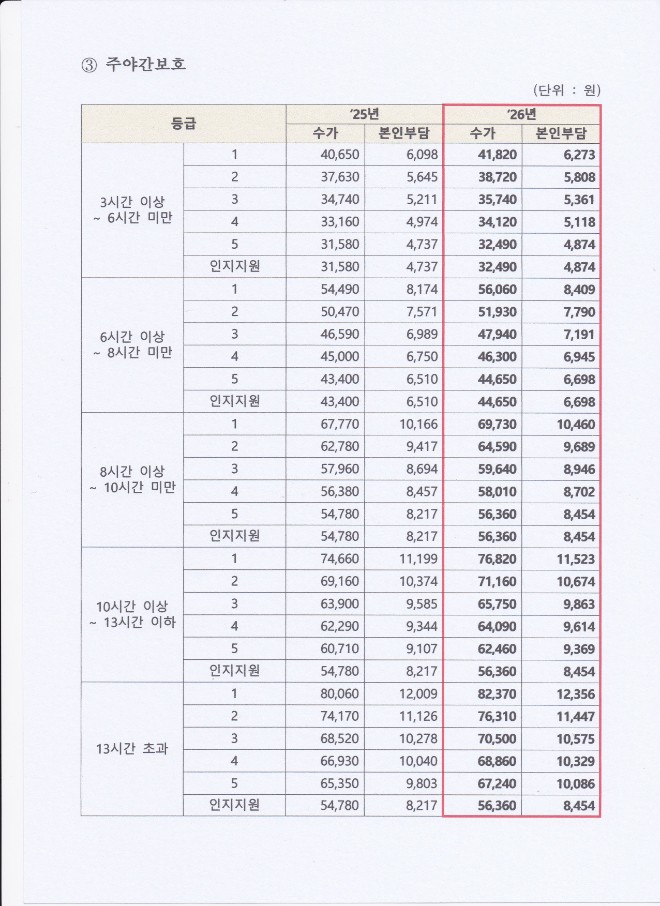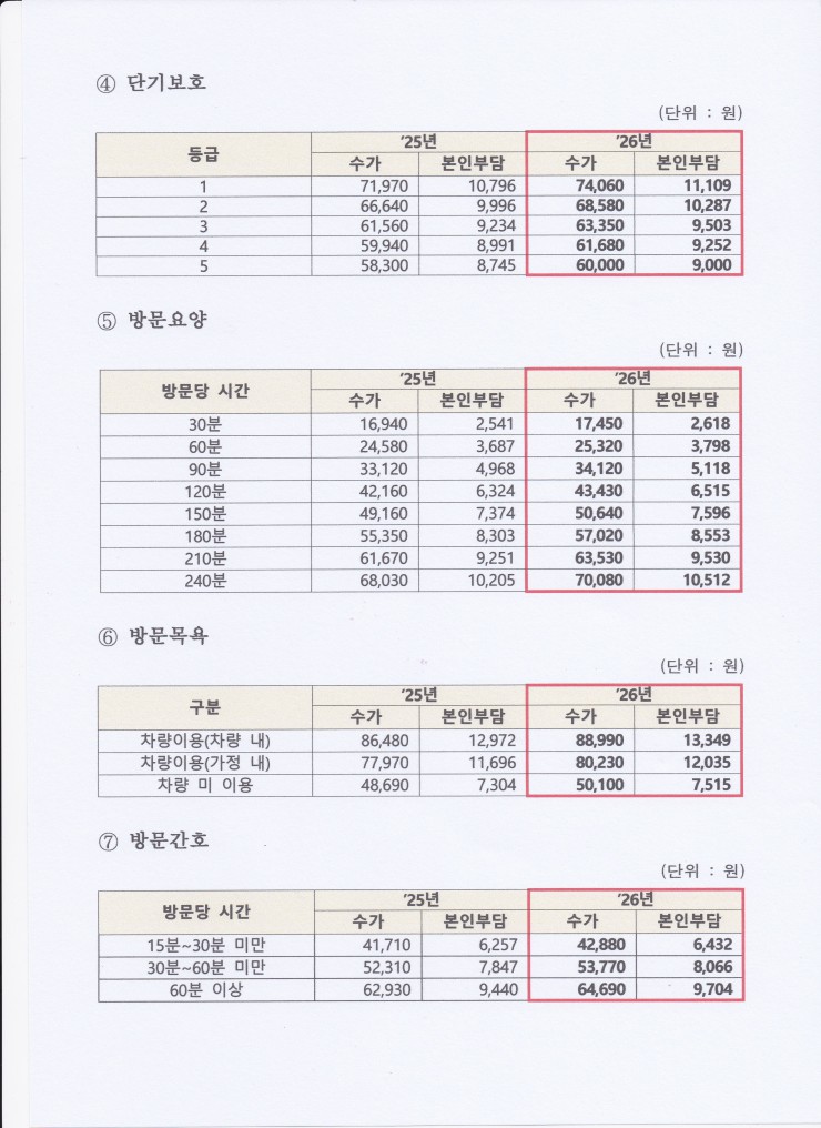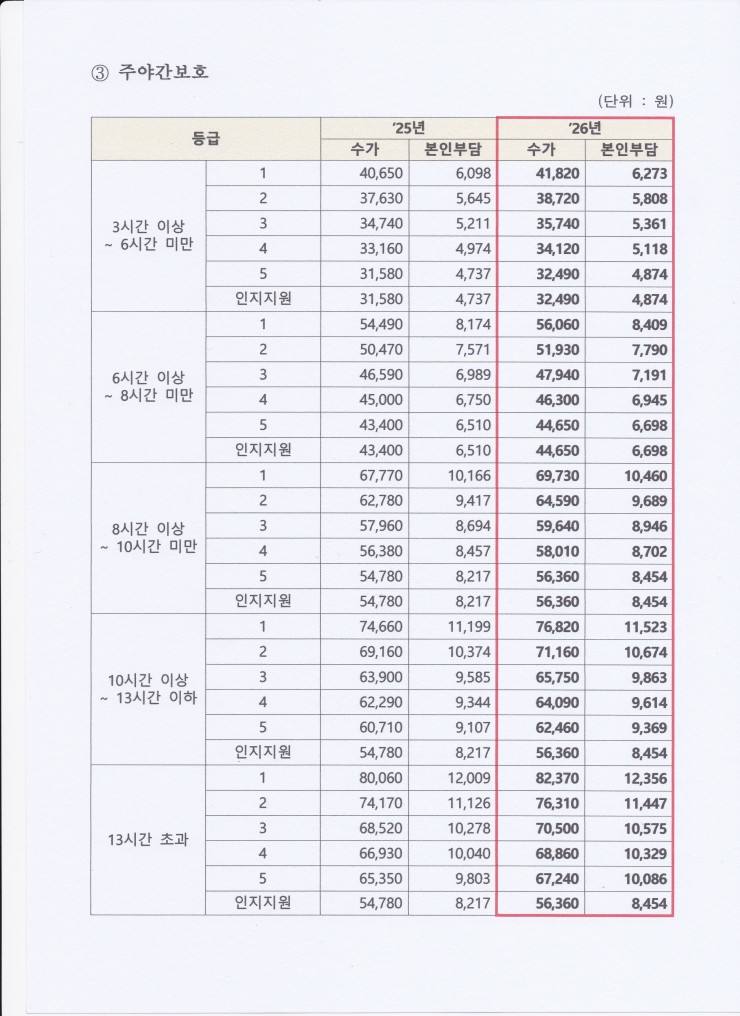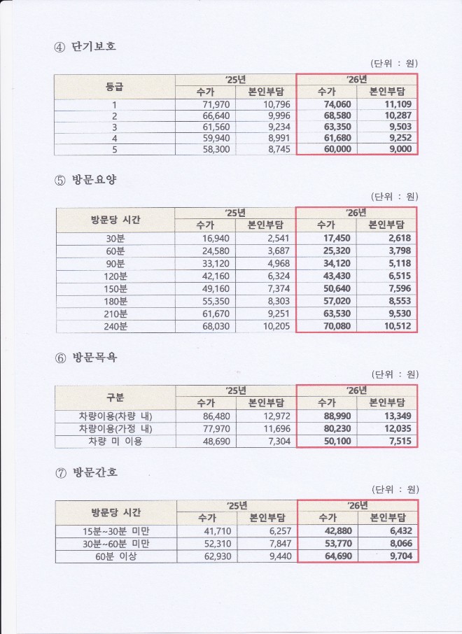 [2026년 수가변경 안내 및 급여비용 안내]